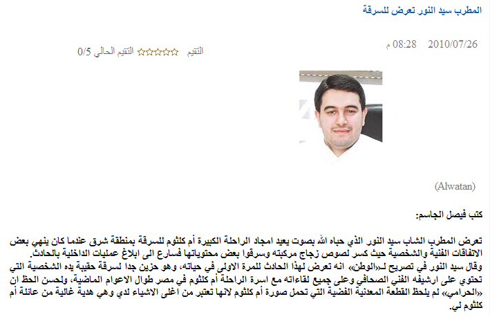 أما في نهاية سنة 2007م زار سيد النور جمهورية مصر العربية وبدا البحث عن كل ما يتعلق بأسطورة الفن والغناء العربي أم كلثوم حتى عاد وأكمل مشوار بحثه بداية 2008م وتعرف بأسرة كوكب الشرق وبدأ انطلاقته الفنية .