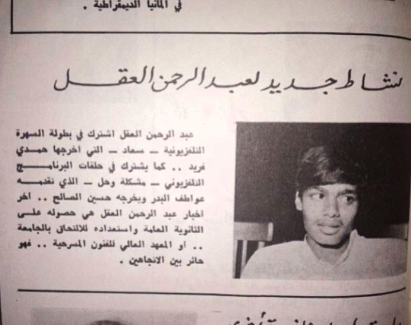 | لقاء مع الفنان الكبير ( عبد الرحمن العقل ) | بحر الحب | الـقاعـة الـكـبرى ( الفن والإعلام ) | 3 | 03-08-2009 10:55 AM |